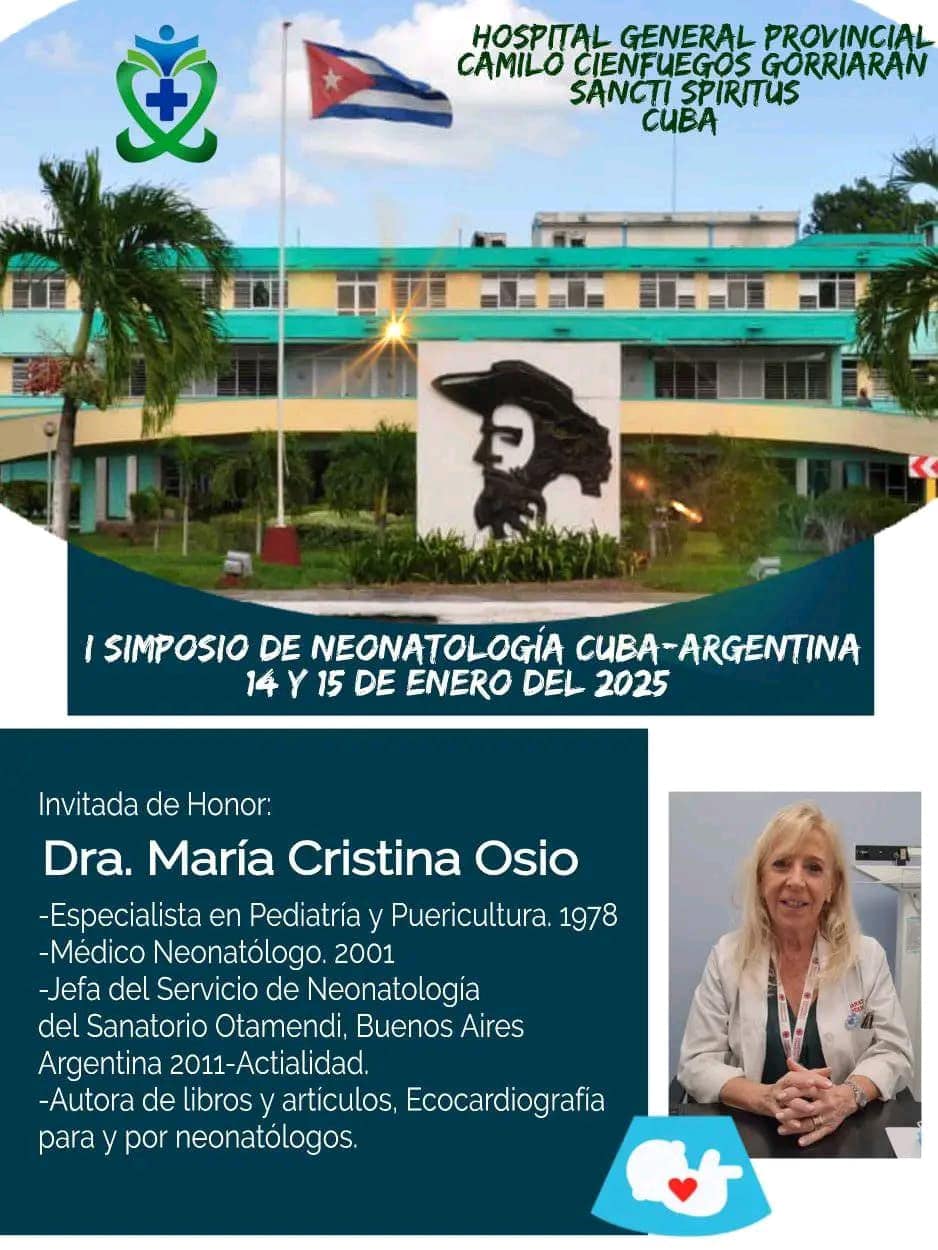 Los días 14 y 15 de enero se estará celebrando el 1er Simposio de Neonatología entre Cuba y Argentina en el Hospital General Universitario Camilo Cienfuegos Como invitada de honor se contará con la presencia de la Dra María Cristina Osio...